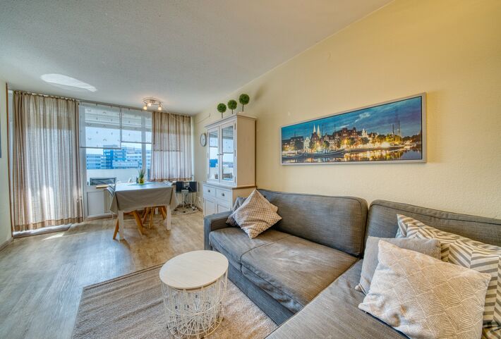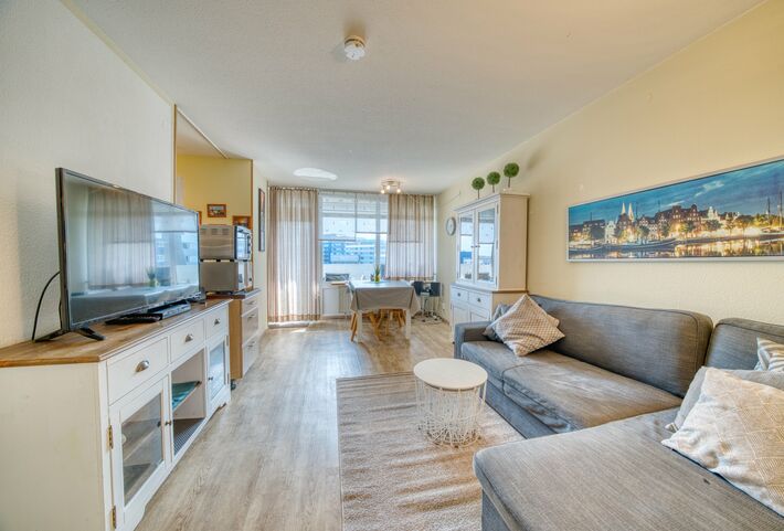 Willkommen in dieser gemütlichen Ferienwohnung im 7. Obergeschoss des Hauses C im Ostsee-Ferienpark Heiligenhafen! Mit Platz für bis zu 4 Personen, einem seitlichen Blick auf den Binnensee und liebevoll gestalteten Wohnbereichen ist sie besonders gut für Familien geeignet.