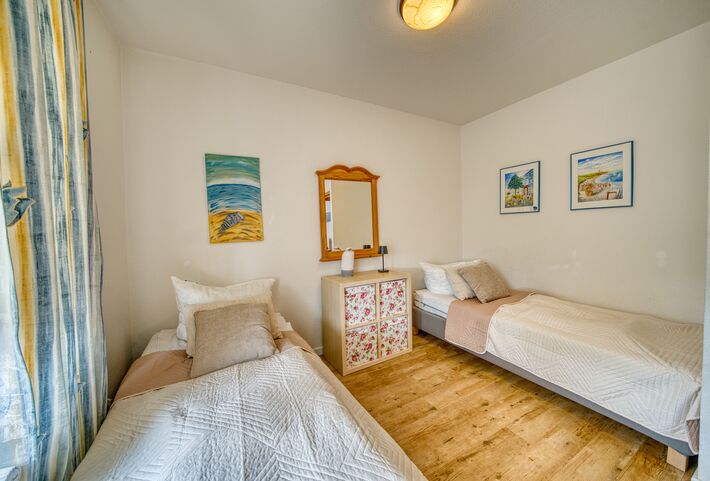 Elternschlafzimmer mit Einzelbetten und TV