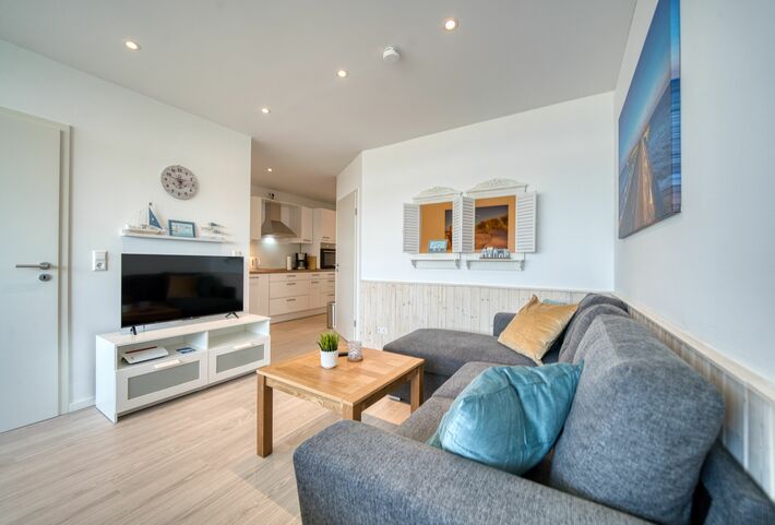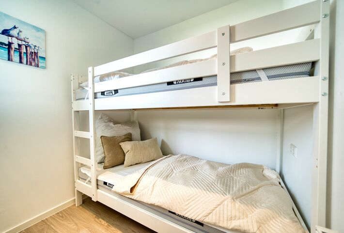 Die stilvolle Wohnung ist ideal für Familien oder Gruppen von bis zu 4 Personen und bietet eine durchdachte Raumaufteilung. Der Wohnbereich mit großzügigem Flachbildfernseher lädt zum Verweilen ein. Im Kinderzimmer mit TV mit Etagenbett können die Kleinen gemütlich schlafen, während die Eltern sich im separaten Schlafbereich mit Doppelbett und eigenem TV entspannen.
