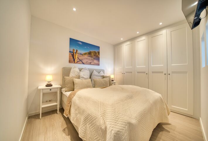 Verbringen Sie Ihren Traumurlaub in dieser exklusiv ausgestatteten 45m² großen Ferienwohnung im Haus F des Ferienparks Heiligenhafen. Genießen Sie den herrlichen Ostseeblick vom Balkon aus auf die Westseite – der perfekte Ort, um den Tag entspannt ausklingen zu lassen.