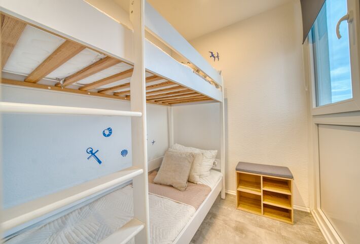 • Kinderzimmer mit Etagenbett für 2 Kinder, Fernseher