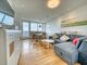 Heller Wohn- und Essbereich mit gemütlicher Eckcouch, Esstisch, Flachbild-TV, Musikanlage und CD-Player