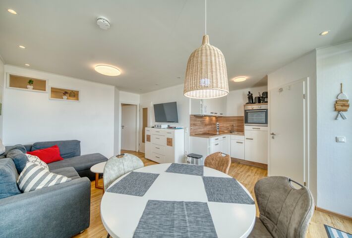 Willkommen in dieser charmanten 45 m² großen Ferienwohnung im beliebten Ferienpark Heiligenhafen, Haus K, in der 5. Etage – ideal für bis zu 4 Personen und perfekt für einen entspannten Familienurlaub an der Ostsee.