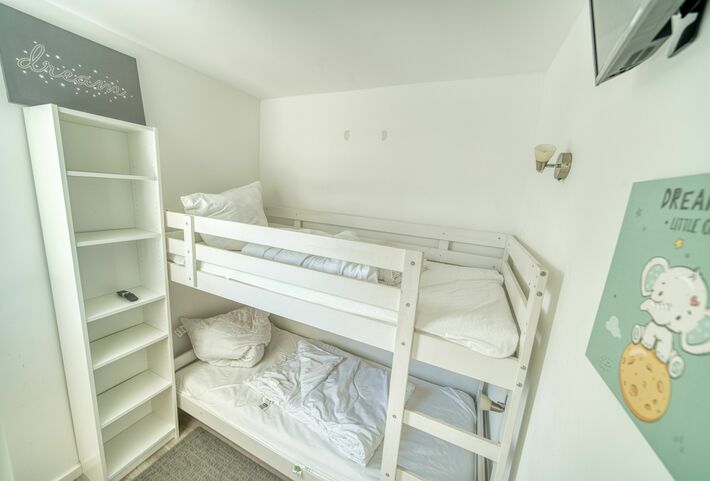 Kinderzimmer mit Etagenbett und ebenfalls eigenem TV – optimal für Familien mit Kindern