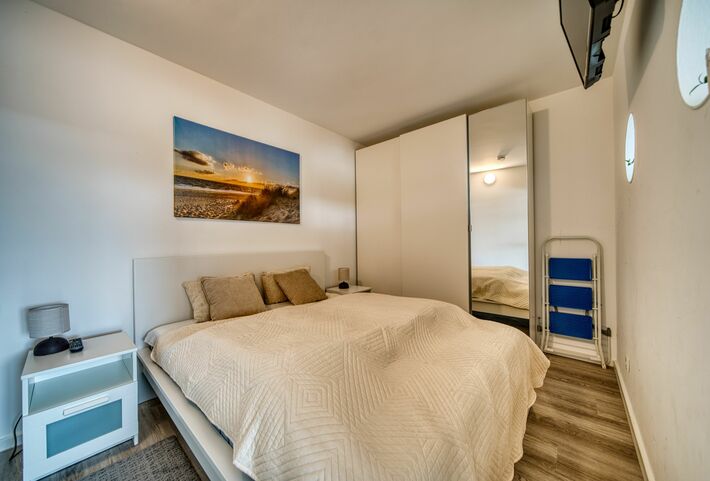 Separates Schlafzimmer mit Doppelbett und eigenem TV
