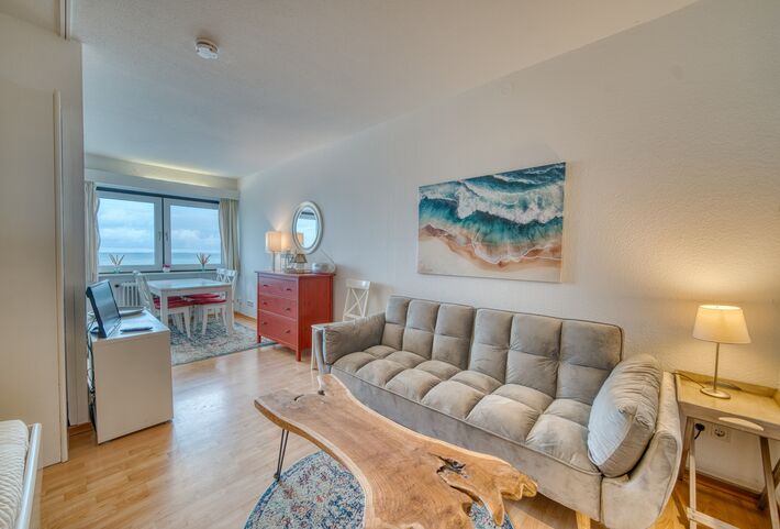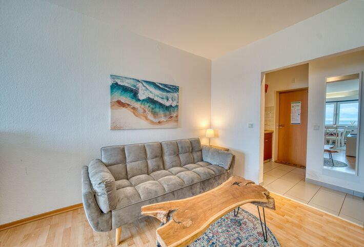 Diese 37 qm große Ferienwohnung in der 2. Etage des Hauses Steinwarder 33 bietet Platz für bis zu 5 Personen und überzeugt mit einem herrlichen Meerblick direkt aus der Wohnung. Obwohl kein Balkon vorhanden ist, genießen Sie hier einen großzügigen Grundriss mit viel Komfort.