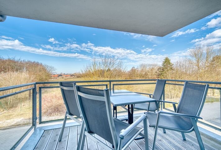 Wunderschöne 3-Zimmer-Ferienwohnung im 1. Obergeschoss im Haus Sonnendeck im Strandpark Großenbrode. Auf 57 m² Wohnfläche bietet sie Platz für bis zu 4 Personen und verfügt über Balkon in Nord-West-Lage, Sauna und Whirlpool. Der Ostseesandstrand ist nur etwa 200 m entfernt.