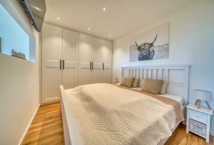Separates Schlafzimmer mit großzügigem Doppelbett und eigenem TV